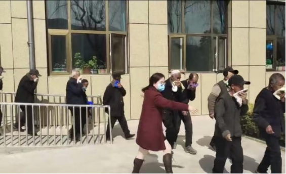 培训结束后,随即开展了一场紧张有序的消防演练。随着急促的警报声骤然响起,通讯联络员迅速按照规范流程拨打火警电话,准确报告火灾情况,与此同时,工作人员迅速响应,第一时间到达各自负责的区域,组织老人进行疏散,他们引导老人用湿毛巾捂住口鼻,保持弯腰的姿势,沿着指定的消防通道快速、有序地前进,安全撤离到预先设定的安全区域。到达安全区域后,工作人员认真清点人数,确保每一位老人都已安全疏散。