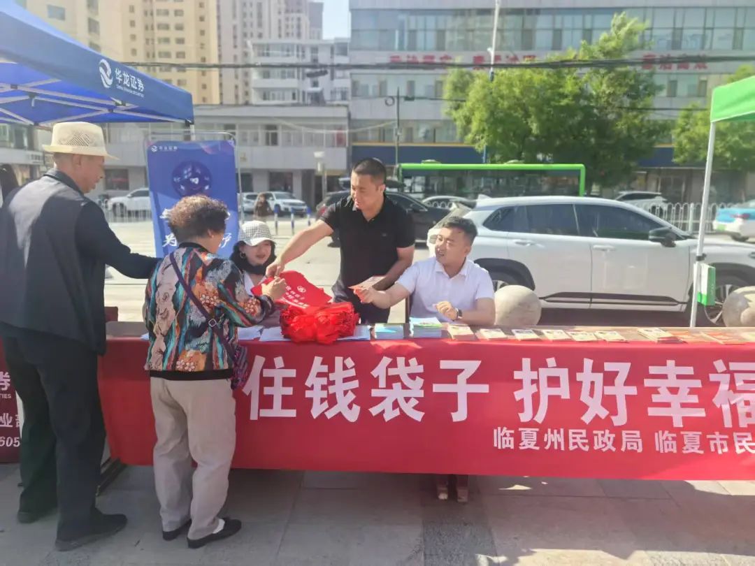 为有效防范养老服务领域诈骗和非法金融风险,切实维护老年人合法权益,帮助老年人捂紧“钱袋子”,为广大老年人安享晚年营造良好的社会环境,6月12日上午,临夏市民政局联合临夏州民政局在临夏市中天健广场举行了以“守住钱袋子,护好幸福家”为主题的2025年防范非法金融集中宣传活动。