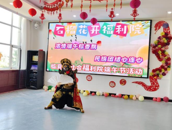 文艺汇演将活动氛围推向高潮。东区街道综合养老服务中心带来的国家级非物质文化遗产《变脸》表演率先登场,表演者精湛的技艺与瞬息万变的脸谱绝活,赢得全场雷鸣般的掌声,为活动增添了厚重的文化底蕴。随后,歌曲《365 个祝福》以动人旋律传递着对生活的热爱与祝福;藏族舞蹈《次真拉姆》以优美舞姿展现了藏族文化的独特魅力,旋出民族团结的和谐节拍;供养人员带来的手势舞《端午安康》,以整齐划一的动作彰显积极向上的精神风貌;深情的《驼铃》演唱则以真挚情感引发全场共鸣;最后,工作人员表演的舞蹈《端午道安康》以欢快节奏点燃全场热情,舞出了福利院大家庭的温暖与活力。