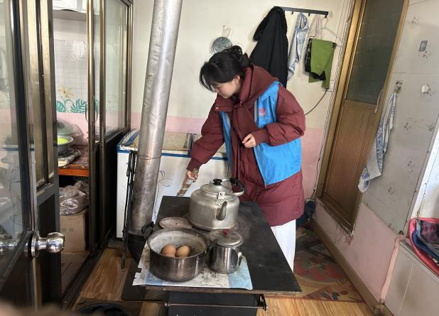 在李奶奶家中,志愿者们发现老人的厨房长期未彻底清洁,油污堆积严重。大家齐心协力,先用洗洁精浸泡,再用钢丝球和抹布反复擦拭,经过一个多小时的努力,厨房的灶台、抽油烟机和碗筷柜都变得干净整洁。李奶奶看着焕然一新的家,眼眶湿润,激动地说:“谢谢你们,过节了还想着我们,帮我把家里打扫得这么干净,让我心里暖乎乎的。”