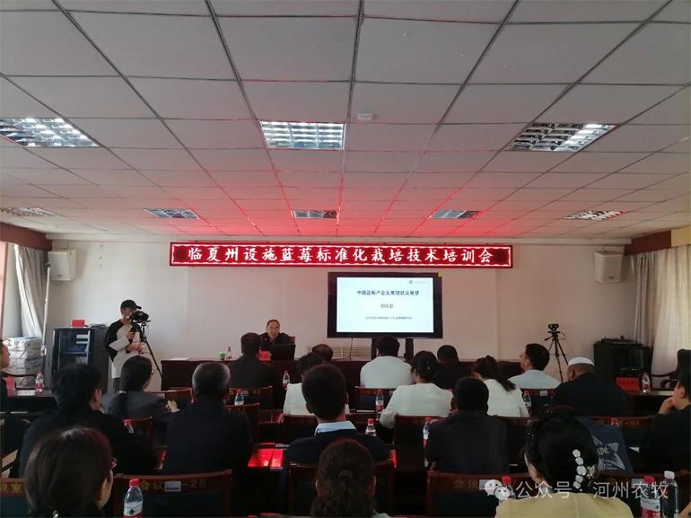 为推动临夏市蓝莓产业高质量发展,提升蓝莓种植户及相关从业人员的技术水平,结合2025年全州千名科技人员助推产业振兴行动,4月28日,临夏州农技中心、临夏市农业农村局在市农业农村局五楼会议室联合举办设施蓝莓标准化栽培技术培训会,会议由州农技中心主要负责人主持,邀请山东省农科院果树研究所二级研究员刘庆忠博士授课。州农技中心、永靖县农技中心、市农技中心和四镇专业技术干部及亿农公司、临夏市安恒旅游开发农民专业合作社蓝莓种植管理人员共50余人参加培训。