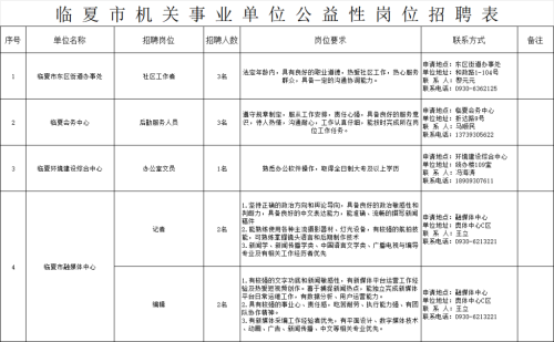 为促进就业困难人员就业,充分发挥公益性岗位托底安置作用,根据州人社局、州财政局《关于印发临夏州公益性岗位开发管理工作实施细则的通知》(临州人社通〔2020〕105号)等有关文件规定及工作需要,现面向社会公开招聘城镇公益性岗位人员。