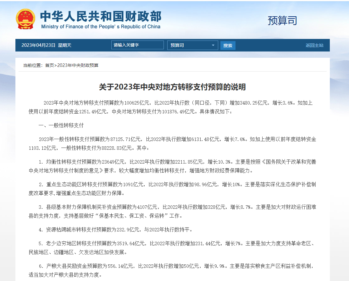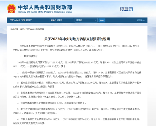 近日,中国财政部官网公布了一份《关于2023年中央对地方转移支付预算的说明》,其中有几句话间接提到了养老金上涨相关事宜。
