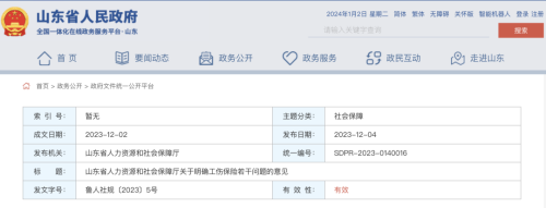 2023年12月,山东省人社厅发布了《关于明确工伤保险若干问题的意见》,自2024年1月1日正式执行。