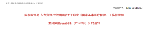 《国家基本医疗保险、工伤保险和生育保险药品目录(2023年)》于2024年1月1日起实施。
