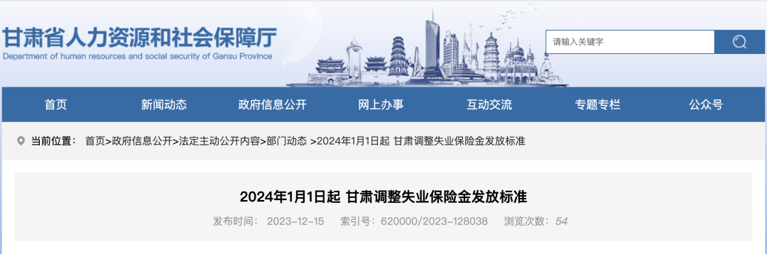 2024年1月1日起,甘肃省人社厅和财政厅联合发布的《关于调整提高全省失业保险金发放标准的通知》实施。