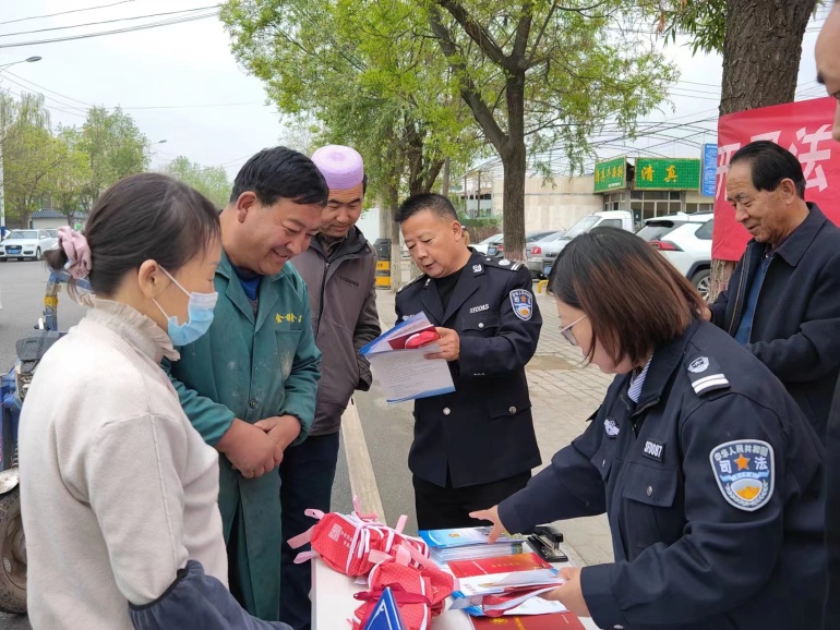 5月8日,枹罕、折桥司法所工作人员在江牌村芍药种植基地和富临市场门口开展《中华人民共和国法律援助法》、《甘肃省法律援助条例》等宣传活动。