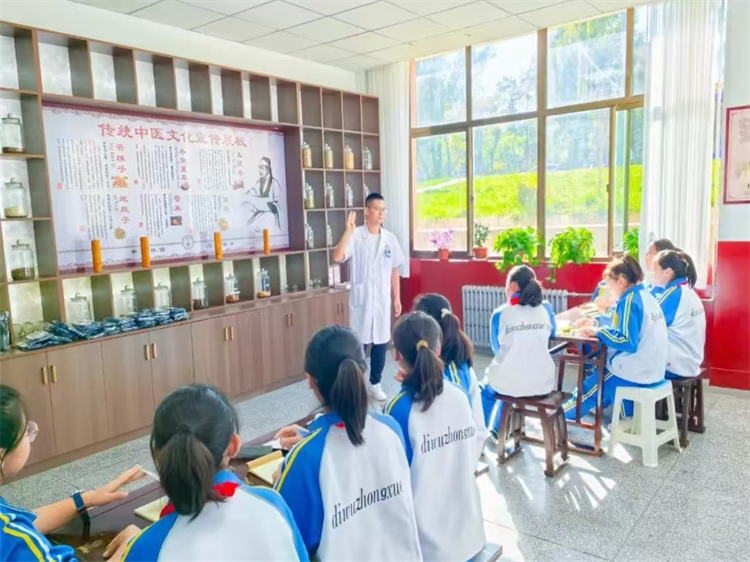 市民族医院康复理疗科主任马文辉为学生们开展首次中医药文化馆社团活动。详细介绍了馆内陈列的中药材标本、中医器具、中医历史文化展板等。