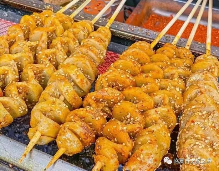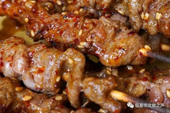 没有荤腥,哪来烟火气。临夏烧烤的江湖里羊肉自然占据了主导,羊肉串必是临夏人吃烧烤的首选肉串焦香扑鼻、香辣可口。表面带着微微的焦脆,一口咬下,油脂瞬间在嘴里炸裂,伴之而来的是羊油特殊的丝丝奶香气。