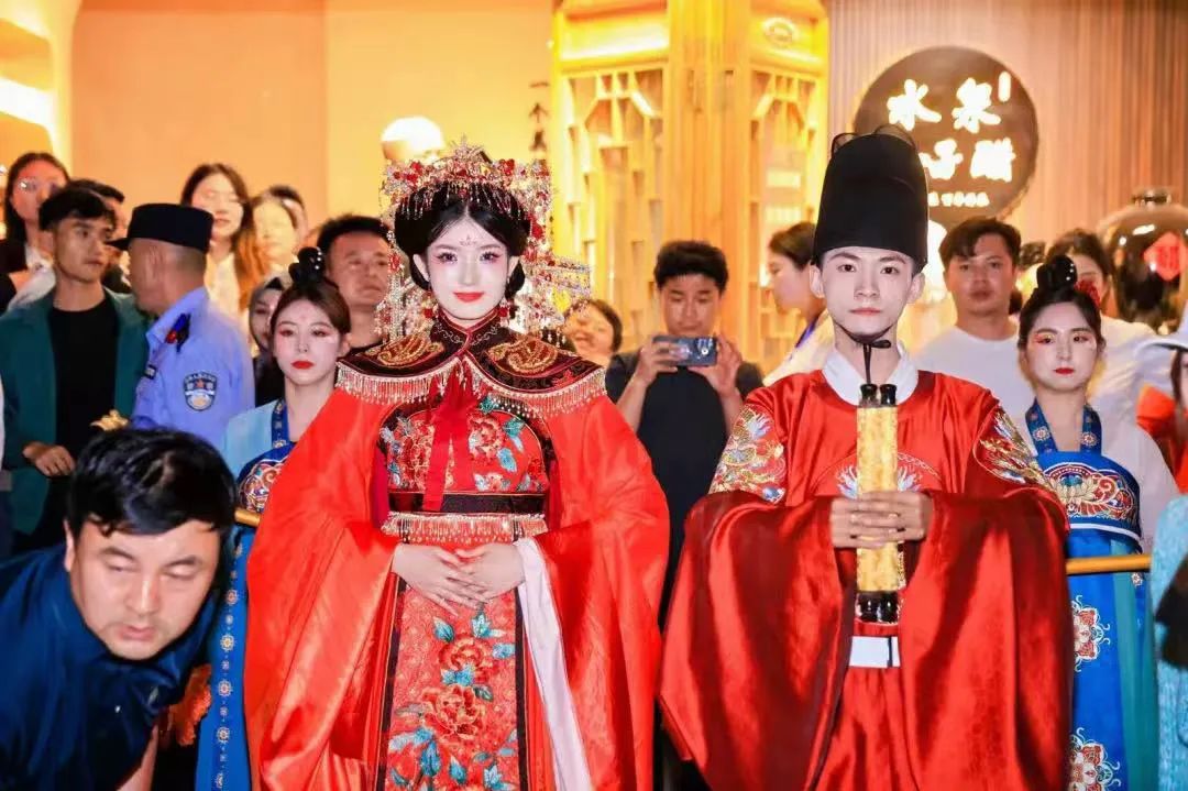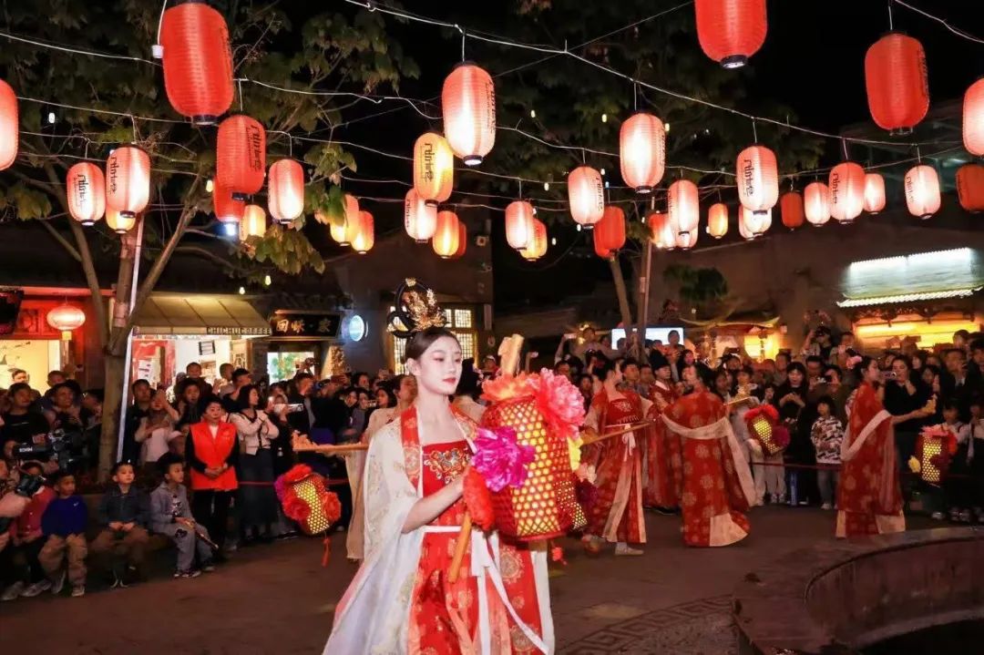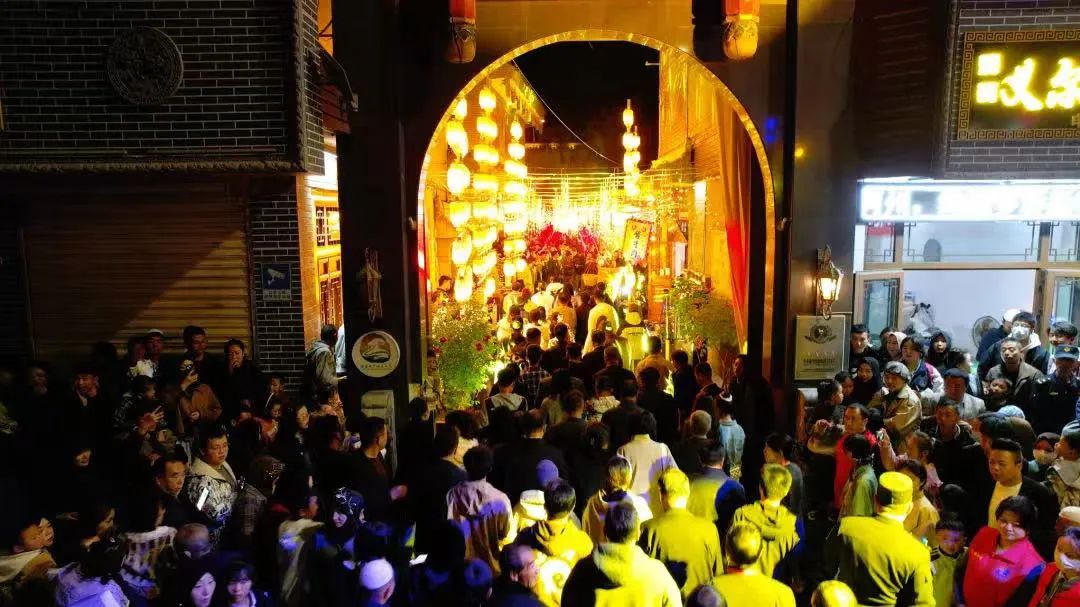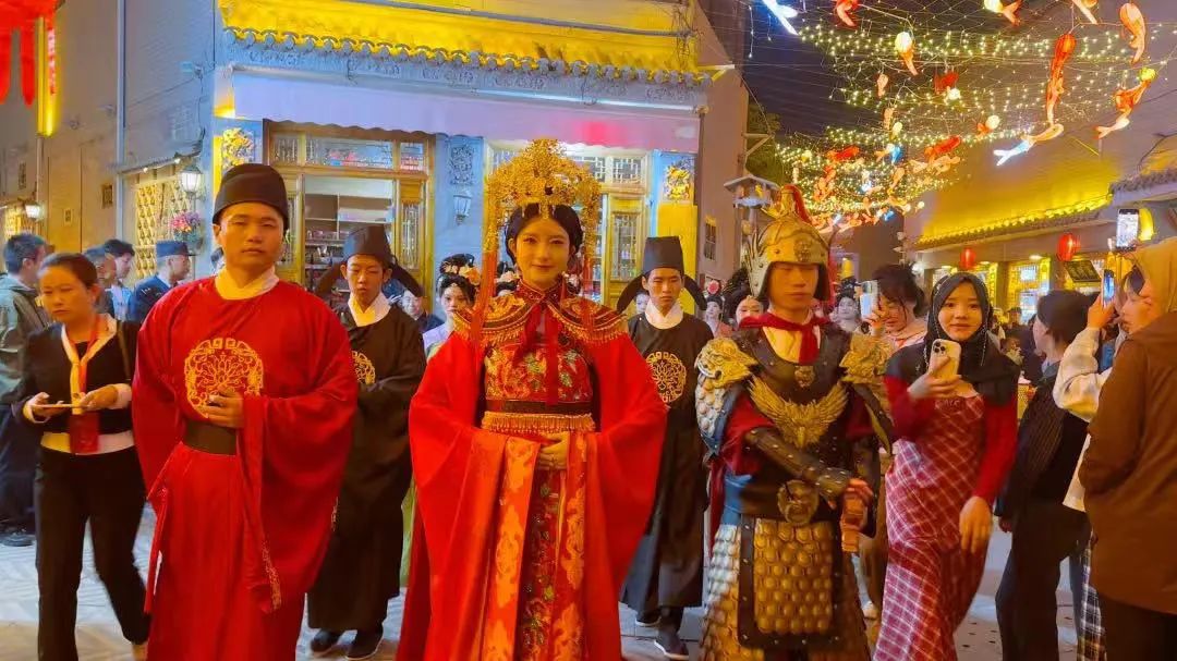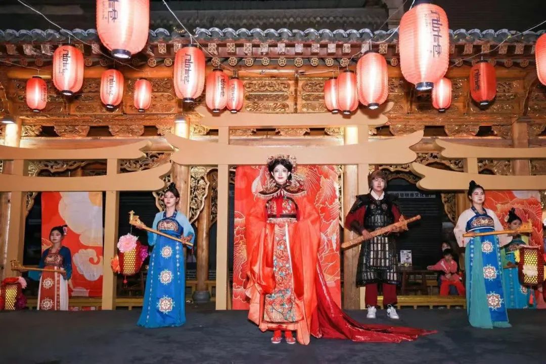 最动人的莫过于文成公主途经河州的情景再现。一队盛装的"送亲使团"从巷陌深处缓缓走来,让观众无不为之动容。而当"牡丹仙子"从天而降,在满城花香中起舞时,整个八坊十三巷都化作了人间仙境。