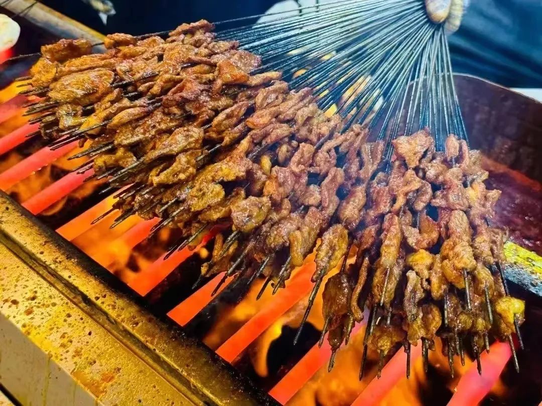 说起临夏烧烤,首先想到的就是烤羊肉串和羊头。往烤架上一字排开,辣椒孜然的量恰到好处,食物发出滋啦声响的那一刻,瞬间觉得快乐不过如此了。