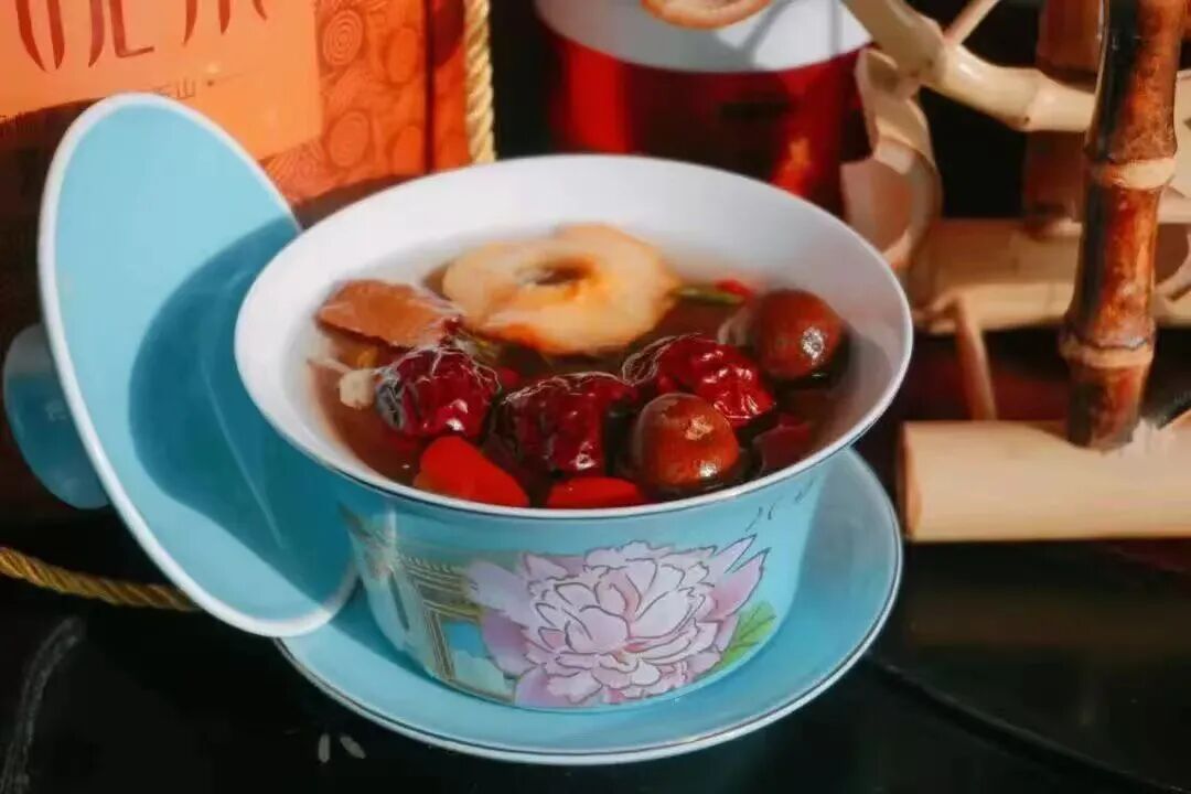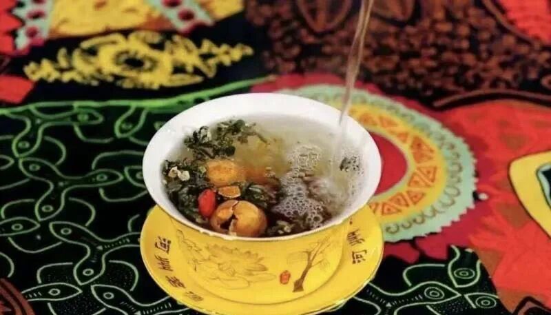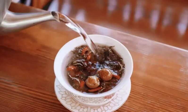 配料里藏着临夏人的养生智慧与包容胸襟。以春尖茶为底,佐以红枣、枸杞、桂圆、冰糖,再依季节添入玫瑰、菊花或核桃,八味食材各司其职,又相融共生。红枣补气血,枸杞养肝肾,冰糖润肠胃,一冲一泡间,将四季滋味与养生之道尽数融入,苦尽甘来的口感,恰如河州人坚韧又温润的性情。