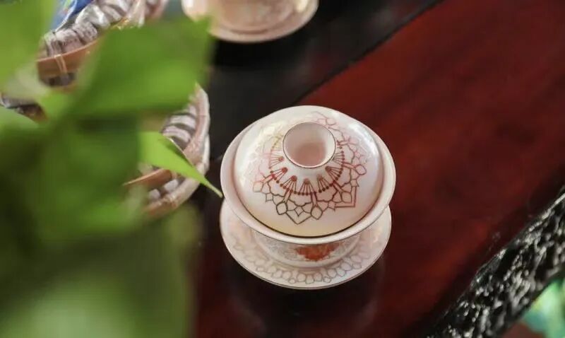 茶具本就藏着天地人心。盖为天、托为地、碗为人,三件套严丝合缝,端起茶托不烫手,盖上茶盖锁茶香,方寸之间,尽显古人对自然与生活的敬畏。掌心托着瓷质茶碗,指尖轻刮碗盖,每一个动作,都是对生活的细腻尊重。