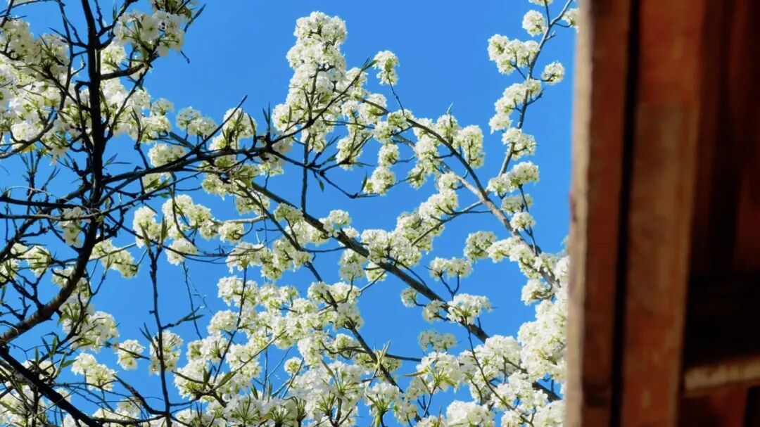 每到暮春时节,园内梨树褪去冬日的沉寂,枝桠间缀满纯白梨花,层层叠叠,如云似雪,将整座山庄装点成不染尘俗的诗意秘境,成为临夏春日赏花不可错过的宝藏目的地。