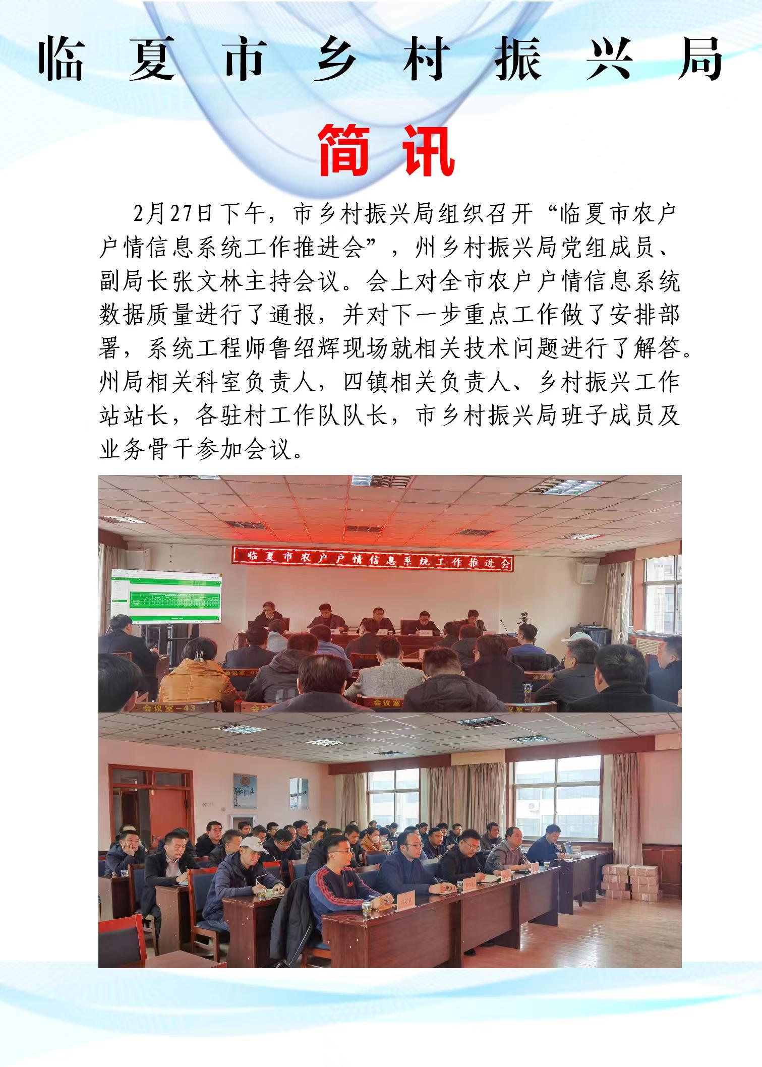 临夏市乡村振兴局组织召开“临夏市农户户情信息系统工作推进会”