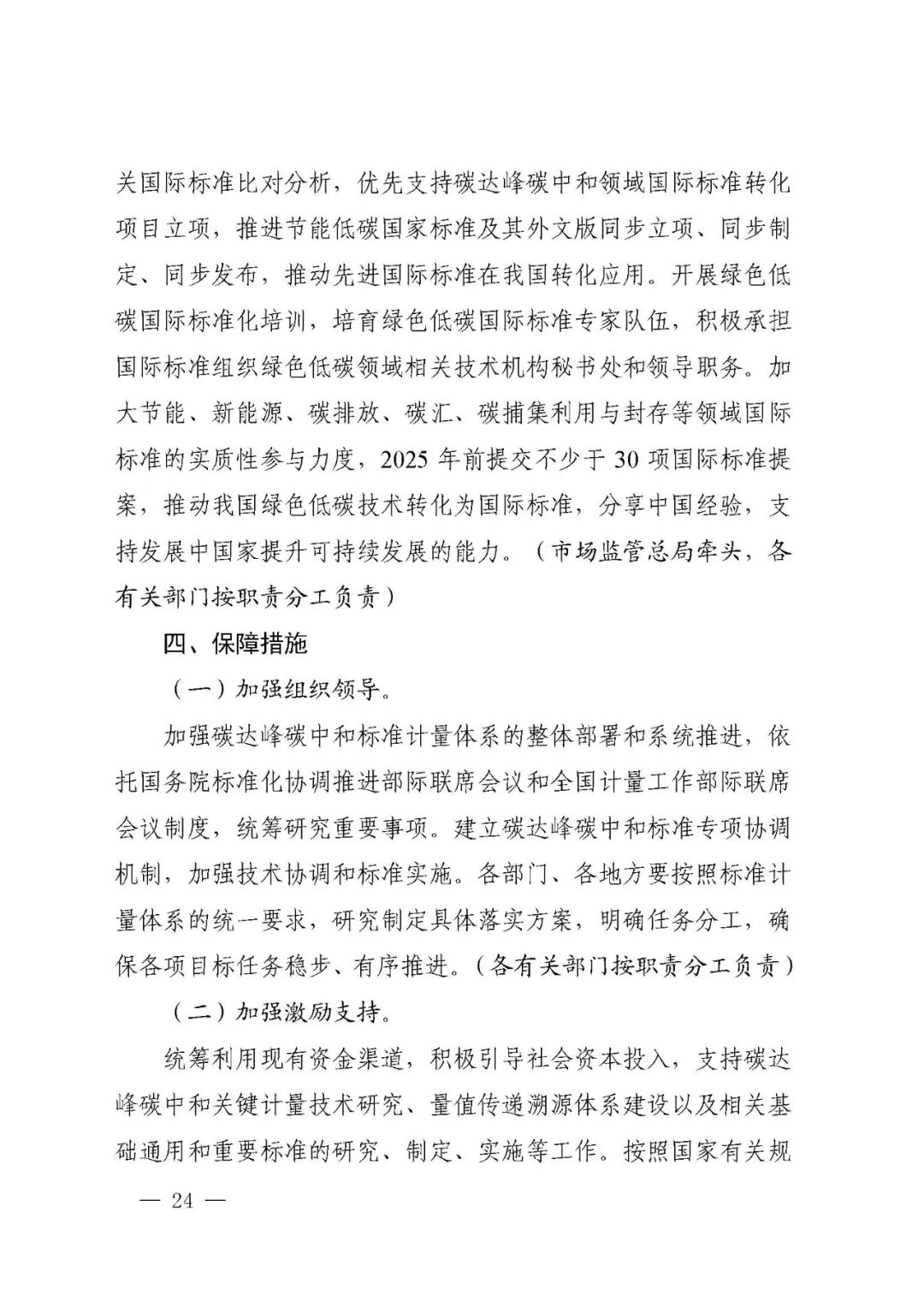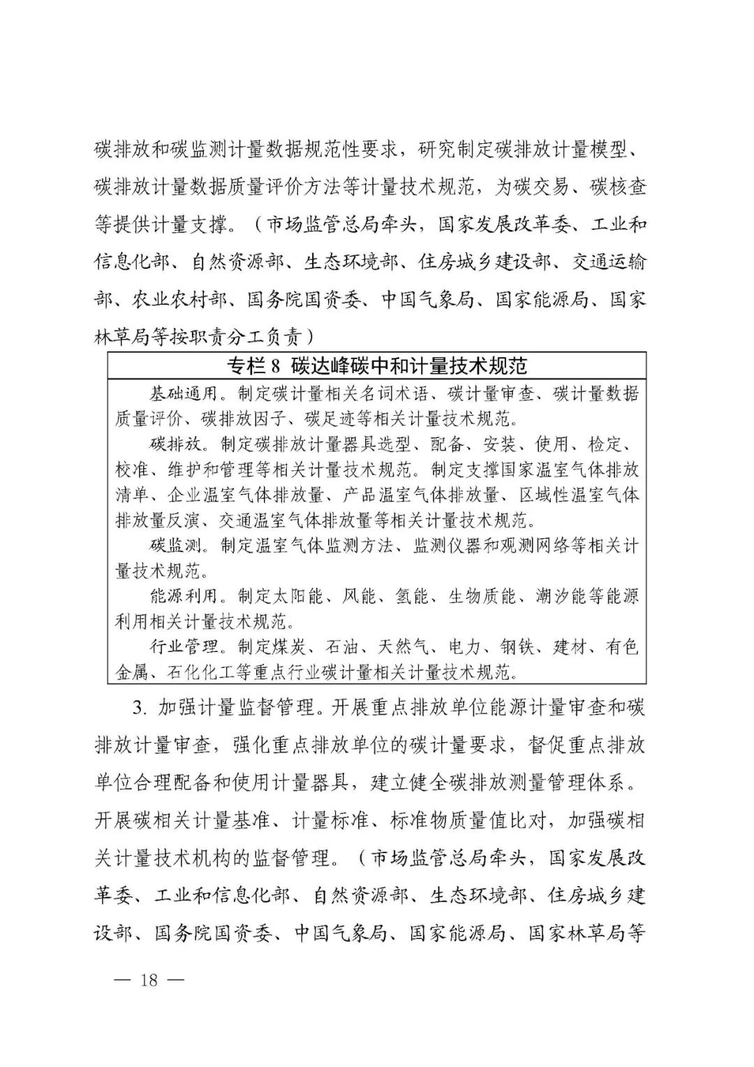 《建立健全碳达峰碳中和标准计量体系实施方案》