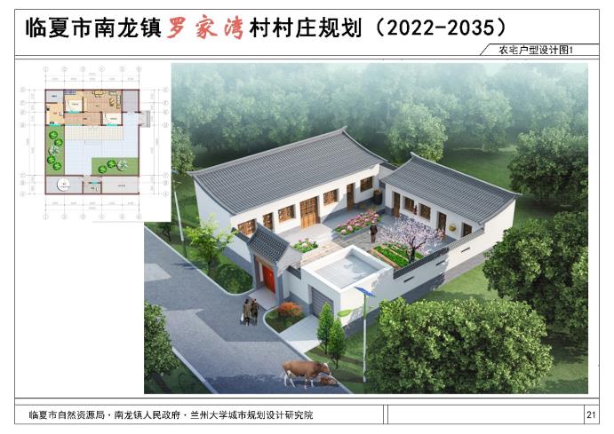 依据罗家湾村人均耕地面积和临夏市相关规范要求,本次规划新建村庄宅基地面积不超过200平方米,采用合院式布局模式。
