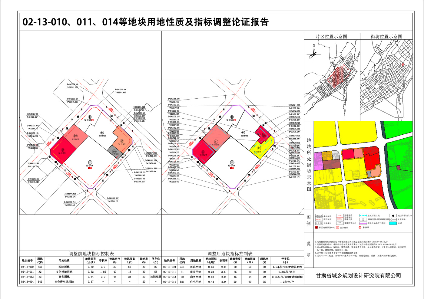 此次用地指标调整符合《临夏市控制性详细规划》及《城市居住区规划设计标准GB50180-2018》指标体系。因此针对02-13-010、011、013、014地块用地指标的调整是可行的。