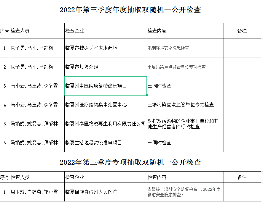 2022年第三季度“双随机、一公开”抽查结果和检查结果公示