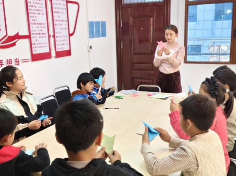 首先,社区工作人员为孩子们介绍了立冬的历史与习俗,随后,带领孩子们诵读了经典诗词,“篱下重阳在,醅中小至香。西邻蕉向熟,时致一梳黄。”是唐庚眼中的立冬,“ 方过授衣月,又遇始裘天。”是陆游感受中的立冬,在优美的诗句中感受古人的所见所思、学习诗词的魅力。最后折纸环节,一朵又一朵精致的“雪花”在欢声笑语中绽放,大家手举着自己的“创作”,共同为冬日留下一抹生机。