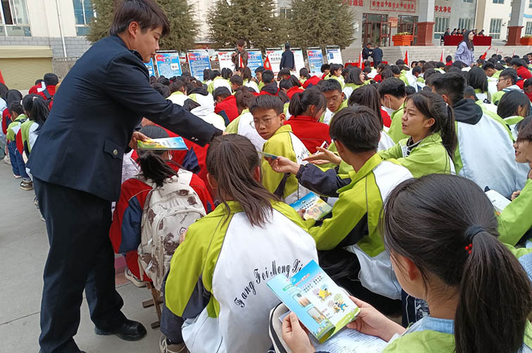讲座中,工作人员分别从交通安全、消防安全、禁毒知识、法治教育等四个方面对学校师生进行讲解,辖区派出所禁毒办工作人员从毒品的种类、吸毒的危害性、毒品的预防和识别入手,深入浅出地介绍了毒品对个人、家庭和社会造成的严重危害。交警大队工作人员结合学生上下学实际情况和剖析交通事故案例,逐一向学生们宣传了日常生活安全出行的常识。工作人员还结合《民法典》、《未成年人保护法》等法律法规,就如何预防校园欺凌及预防青少年犯罪,从什么是违法行为、如何自觉遵守法律法规等方面,向大家讲述了一堂生动的法治教育课,引导广大师生学会利用法律武器保护自己,自觉遵纪守法,拒绝校园欺凌和抵制各种不良诱惑,同时向在座师生展出了仿真毒品模型进行宣传并发放了禁毒和法治宣传手册等宣传资料。