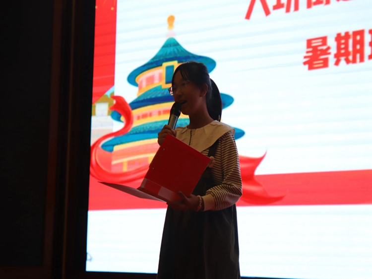 街道主要负责人登台致辞,话语中满是对公益课堂成果的肯定与欣慰。她向默默耕耘的志愿者们致以崇高敬意,为勤奋求知的孩子们送上诚挚祝贺,更以温暖的期许鼓励孩子们将暑期所学化为成长动力,在未来的道路上持续探索、闪闪发光。