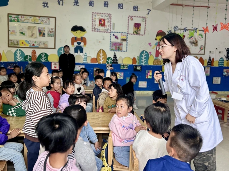 活动现场,医护人员化身“健康老师”,通过寓教于乐的方式提升幼儿健康意识,开展儿童保健知识讲座,以动画短片、绘本故事、角色扮演等形式,向幼儿讲解七步洗手法、正确刷牙方法、合理饮食等知识。孩子们手持卡通洗手步骤图、牙齿模型,在游戏中学会健康小技能。医护人员与幼儿的互动环节将讲座氛围推向了高潮,幼儿们积极举手参加洗手、刷牙等技能实践和有奖竞答,现场气氛热烈。老师们表示此次活动“实用又有趣”。同时,街道工作人员为幼儿发放了《幼儿健康指南》,提醒他们在家里也要当好家人的“健康小老师”。