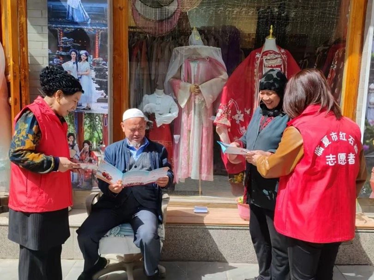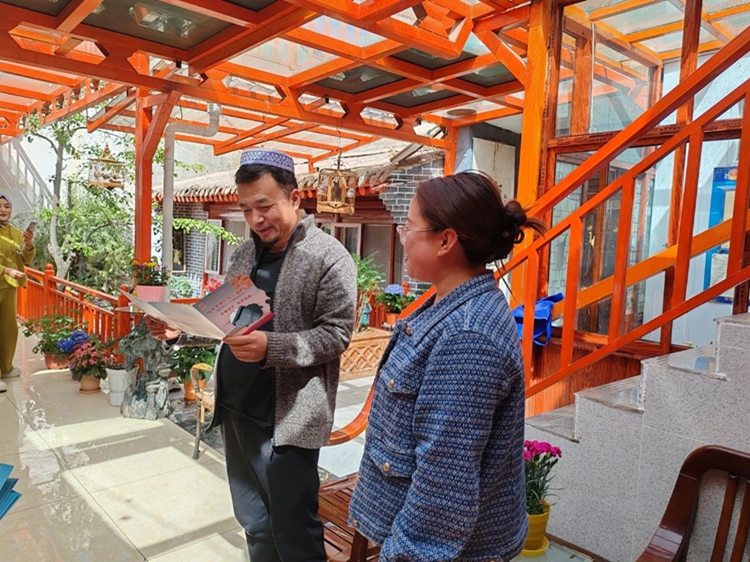 走访宣传中,社区工作人员分组走访辖区餐饮、零售、服务等各类商铺,向商户及顾客发放《民族团结进步知识手册》和宣传彩页,面对面讲解党的民族政策、法律法规及民族团结的重要意义。针对商户关心的经营问题,结合民族团结主题,引导大家相互尊重、诚信经营、互帮互助,营造“各族群众共居共学、共建共享、共事共乐”的良好氛围。同时,牡丹文化嘉年华期间,商铺变身“温馨驿站”,服务细节彰显团结温度,景区内商铺积极响应,在店内或门前划定“民族团结便民休息区”,配备休息桌椅、免费热水、手机充电设备、景区导览图等便民设施。部分商户还结合民族特色,提供茶饮品尝、民族文化讲解等服务,让游客在休憩中感受多元文化魅力。
