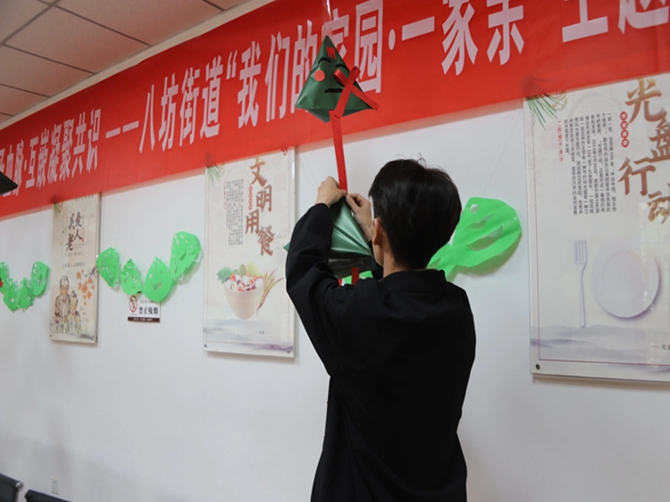 活动前夕,八坊街道蝴蝶楼社区工作人员精心挑选颗粒饱满的糯米与新鲜宽韧的粽叶,为端午活动备好软糯香甜的 “底色”;将精心编制的柳条悬挂在社区门口,青碧的枝桠间凝结着老手艺的温度与节日的期待;巧手制作出精美龙舟装饰成为节庆活动最鲜活的注脚。