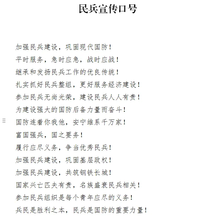 国无防不立,民无兵不安。民兵是中国共产党领导的不脱离生产的群众武装组织,是中华人民共和国武装力量的组成部分,是中国人民解放军的助手和后备力量。我们的军队是人民军队,我们的国防是全民国防。为加强新时代民兵组织建设,提升国防动员和后备力量建设水平,依据《中华人民共和国兵役法》《中华人民共和国国防动员法》《民兵工作条例》等法律规定,现倡议我市广大退役军人和适龄公民积极报名参加民兵组织,欢迎加入光荣的民兵队伍,履行国防义务。一、基本条件(一)政治条件。参加民兵组织人员必须拥护中国共产党的领导,拥护中国共产党的路线、方针、政策,坚持四项基本原则,热爱中国共产党,热爱社会主义祖国,热爱劳动,遵纪守法,品德优良,无违法犯罪记录。(二)年龄条件。民兵主要从18周岁至45周岁符合编入民兵组织条件男性公民中挑选。根据需要,可以吸收具备相应条件、具有专业技术特长的18周岁以上女性公民和45周岁以上男性公民参加民兵组织。(三)身体条件。身体健康,无传染性疾病,具备参加军事训练的身体素质。(四)优先条件。共产党员、退役军人、具有军民通用专业及其他专业技术特长人员(持有相关资格认证证书)、军民融合单位工作人员,经过军事训练、具有专业技术特长、户籍在临夏市或与临夏市辖区内企事业单位签订1年以上用工合同。二、主要任务(一)参加点验。每年组织基干民兵参加集中点验、入队宣誓,增强加入民兵组织的荣誉感。(二)参加训练。根据年度军事训练计划和遂行任务需要,每年组织部分基干民兵进行集中训练,主要包括队列、战术、实弹射击等课目和专业装备实操训练,提高军事素质,增强战斗作风。(三)参加教育。定期组织基干民兵开展政治教育,学习党史军史以及部队基本常识等。(四)执行任务。执行辖区内战备值勤、抢险救灾、维稳处突等应急应战任务等。三、有关待遇(一)免费参加体检。按照征兵体检标准组织身高、体重、内外科、血压、血常规、心电图等项目检查。(二)发放训练补助。参加军事训练、战备执勤、抢险救灾、学生军训、比武竞赛、集结点验或有关勤务活动的基干民兵,按照国家有关规定发放参勤补助,并提供免费食宿等保障。对具有专业技术特长或军事训练成绩优秀人员可聘为民兵教练员,训练期间发放教练员任职补助。(三)享受优待政策。基干民兵在参训演习或执行任务时统一购买人身意外伤害保险,在此期间发生伤亡的,按照《军人抚恤优待条例》《伤残抚恤管理办法》《甘肃省民兵优待优惠和权益保障办法(试行)》(甘政发〔2024〕13号)享受评残、抚恤等优待政策。(四)体验部队生活。每年组织基干民兵参加集中点验、入队宣誓、军事训练,增强加入民兵组织的荣誉感和自豪感。根据年度军事训练计划,每年组织封闭式基地化轮训,采取军事化管理、连队化生活方式,集中组织军事训练、实弹射击、拉动演练等课目训练,期间统一配发21式作训服。四、报名方式符合条件人员可携带个人身份证、退役证、专业技能证书等相关证明复印件,到临夏市人民武装部军事科或各乡(镇)武装部现场咨询报名。望广大符合条件的公民踊跃报名参加民兵组织,成为一名光荣的中国民兵!报名热线:临夏市枹罕镇人民武装部:何增强 (15393035961)