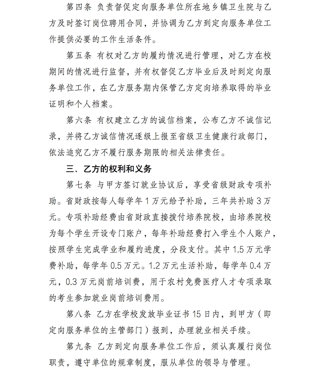 2.甘肃省农村免费医疗人才专项定向就业协议书
