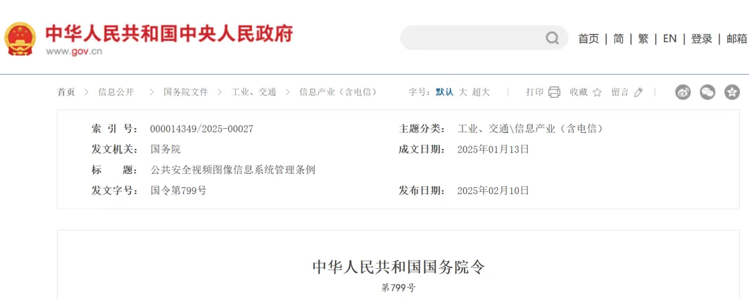 《公共安全视频图像信息系统管理条例》将于4月1日起施行。该《条例》旨在规范公共安全视频系统管理,维护公共安全,保护个人隐私和个人信息权益,共34条。