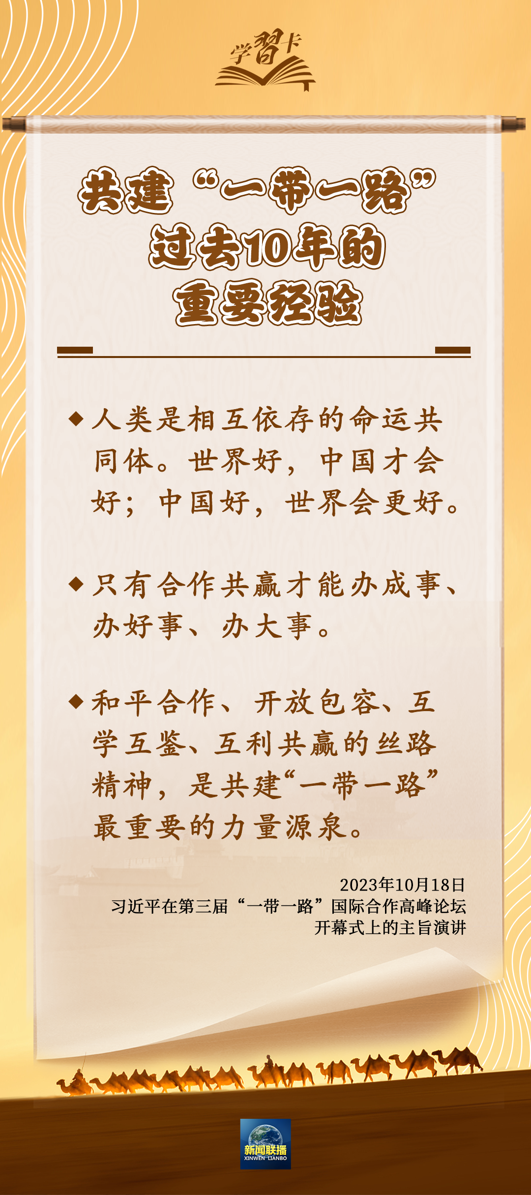 今年是习近平主席提出建设“丝绸之路经济带”和“21世纪海上丝绸之路”十周年。十年来,“一带一路”倡议的朋友圈不断壮大,经贸合作硕果累累,打造了一个个“国家地标”“民生工程”“合作丰碑”。