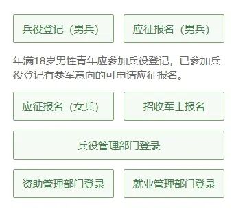如果你还没有进行兵役登记,请点击“兵役登记(男兵)”进入页面;否则就从“应征报名(男兵)”进入页面。
