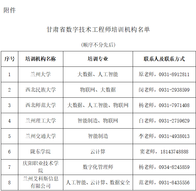 附件:甘肃省数字技术工程师培训机构名单(顺序不分先后)