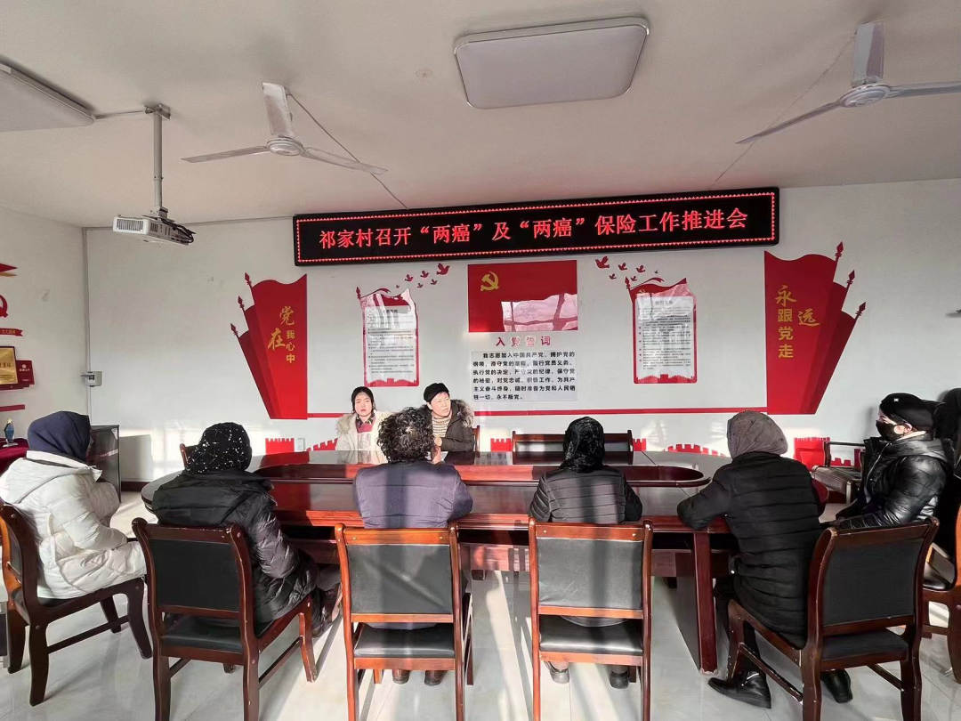 为增强辖区广大妇女抵御重大疾病风险的能力,保障女性身心健康,近日,城郊镇祁家村组织召开专题会议,安排部署妇女“两癌”筛查及保险工作,要求工作人员根据辖区群众实际情况,积极在辖区开展“两癌”筛查宣传活动,宣传和动员符合条件的人员参加“两癌”免费筛查,与保险公司密切配合、层层落实、努力规范工作流程,做好投保前的咨询、联系等相关服务、协调工作,切实为广大妇女群众办好事办实事。