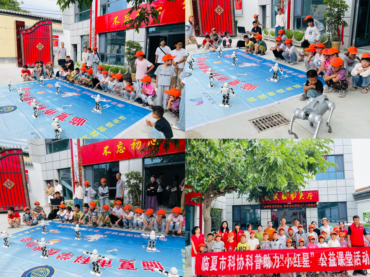 活动伊始,市委党研室、市科协向社区及同学们赠送了党史、科普类书籍,为孩子们的暑假学习送上了丰富的精神食粮。随后,播放红色短片《烈火中永生的邱少云》,画面中邱少云的英雄事迹深深打动了在场的每一个人,让孩子们对革命先烈的敬意油然而生。在红色经典诵读环节,“小红星”公益课堂的老师带领学生们朗诵了《七律・长征》《沁园春・雪》《沁园春・长沙》,激昂的语调中满是对革命先辈的崇敬和对祖国的热爱。党史知识问答环节更是掀起了小高潮,“小红星”公益课堂老师提出10道党史知识题,孩子们积极抢答,答对的同学获得了红色书籍作为奖品,在互动中加深了对党史的了解。听音乐猜红歌环节同样精彩纷呈,工作人员播放红歌片段,孩子们踊跃举手抢答,答对者收获了奖品奖励,大家在欢快的氛围中重温了红色旋律。之后,市科协老师开展的科普知识趣味问答,让孩子们在轻松的互动中学到了不少科学知识。活动最后,机器人、机器狗展示表演吸引了孩子们的目光,VR眼镜体验更是让他们近距离感受了科技的魅力,现场欢呼声不断。