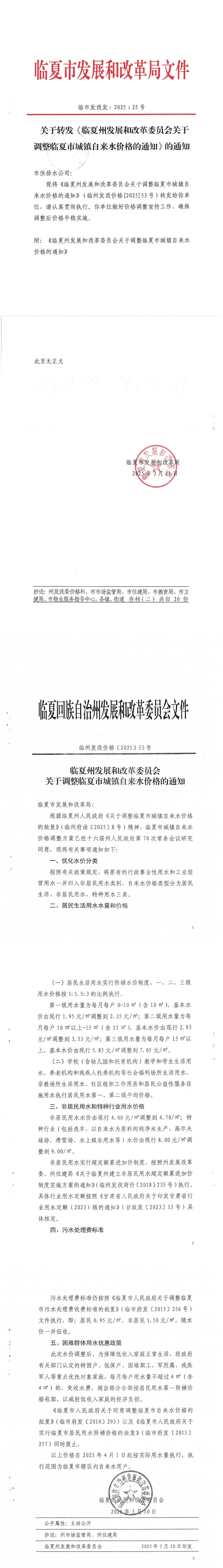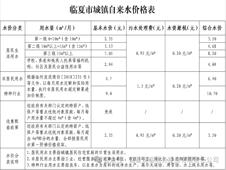 根据临夏市发展和改革局《关于转发〈临夏州发展和改革委员会关于调整临夏市城镇自来水价格的通知〉的通知》(临市发改发〔2025〕25号)等文件精神,现将调整后的临夏市城镇自来水价格通知如下: