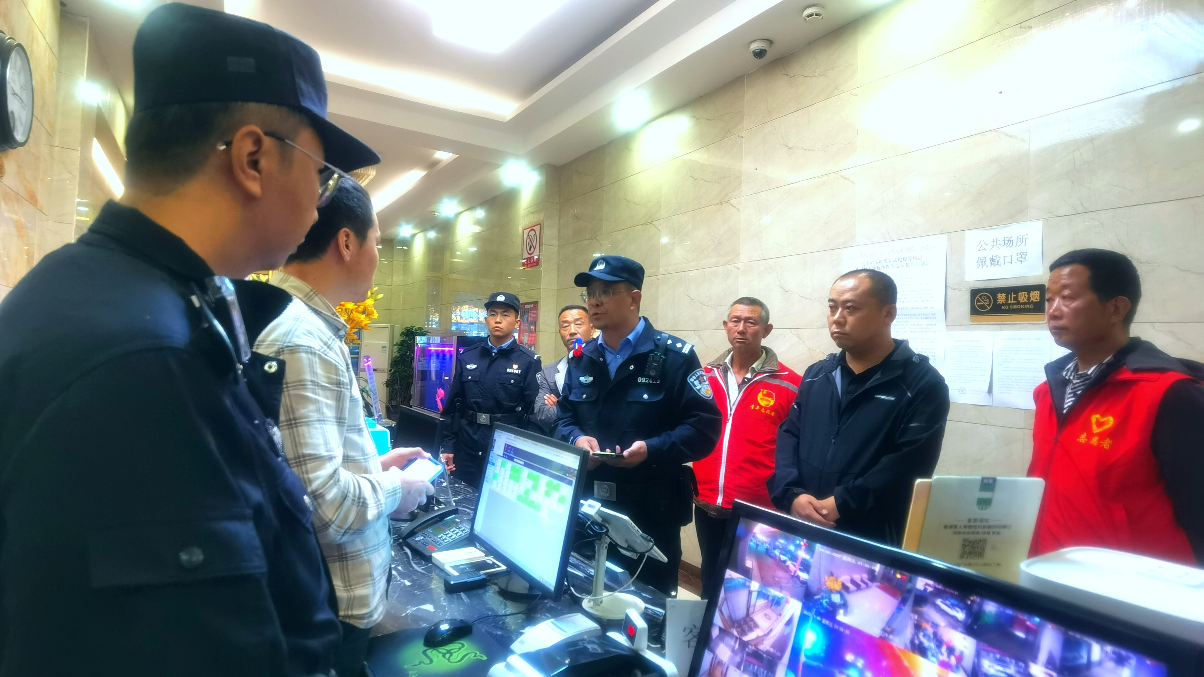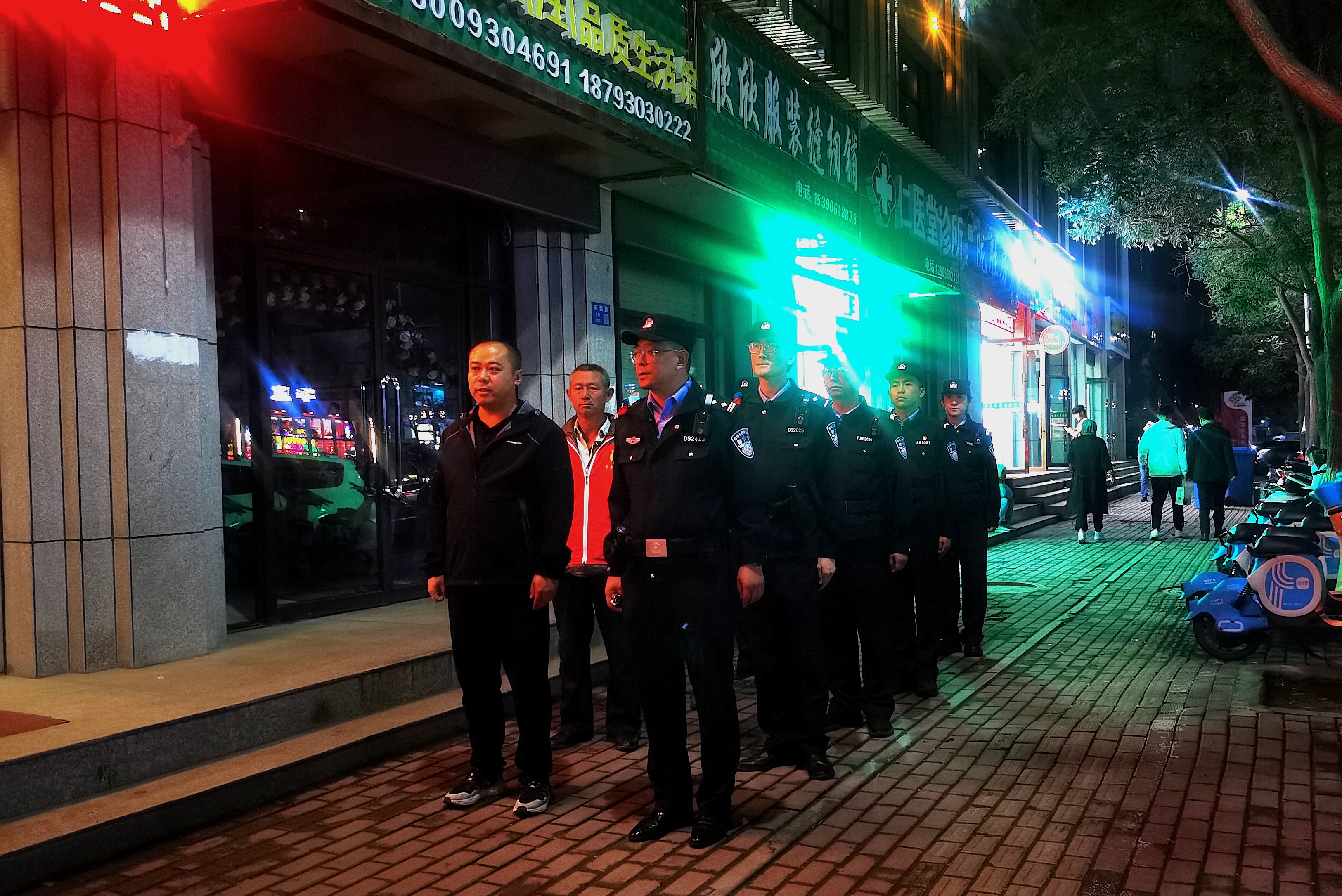 巡逻中,由派出所民辅警,社区网格员、志愿者组成的夜巡队伍采取步巡、车巡相结合方式,对辖区重点路段、重点区域、重点场所进行巡逻巡查,着重加大巡逻防控力度,提高巡逻防控频次,稳步提升见警率和管事率,对各类安全隐患进行及时排查,并提醒居民要注意用电安全、防火防盗及遇到可疑人员需及时报警,还向群众讲解打击电信诈骗、养老诈骗等相关知识,提升广大群众对平安建设的知晓率,真正做到及时发现消除各类不稳定因素与安全隐患,全力维护辖区平稳有序,为辖区居民点亮一盏“平安灯”。