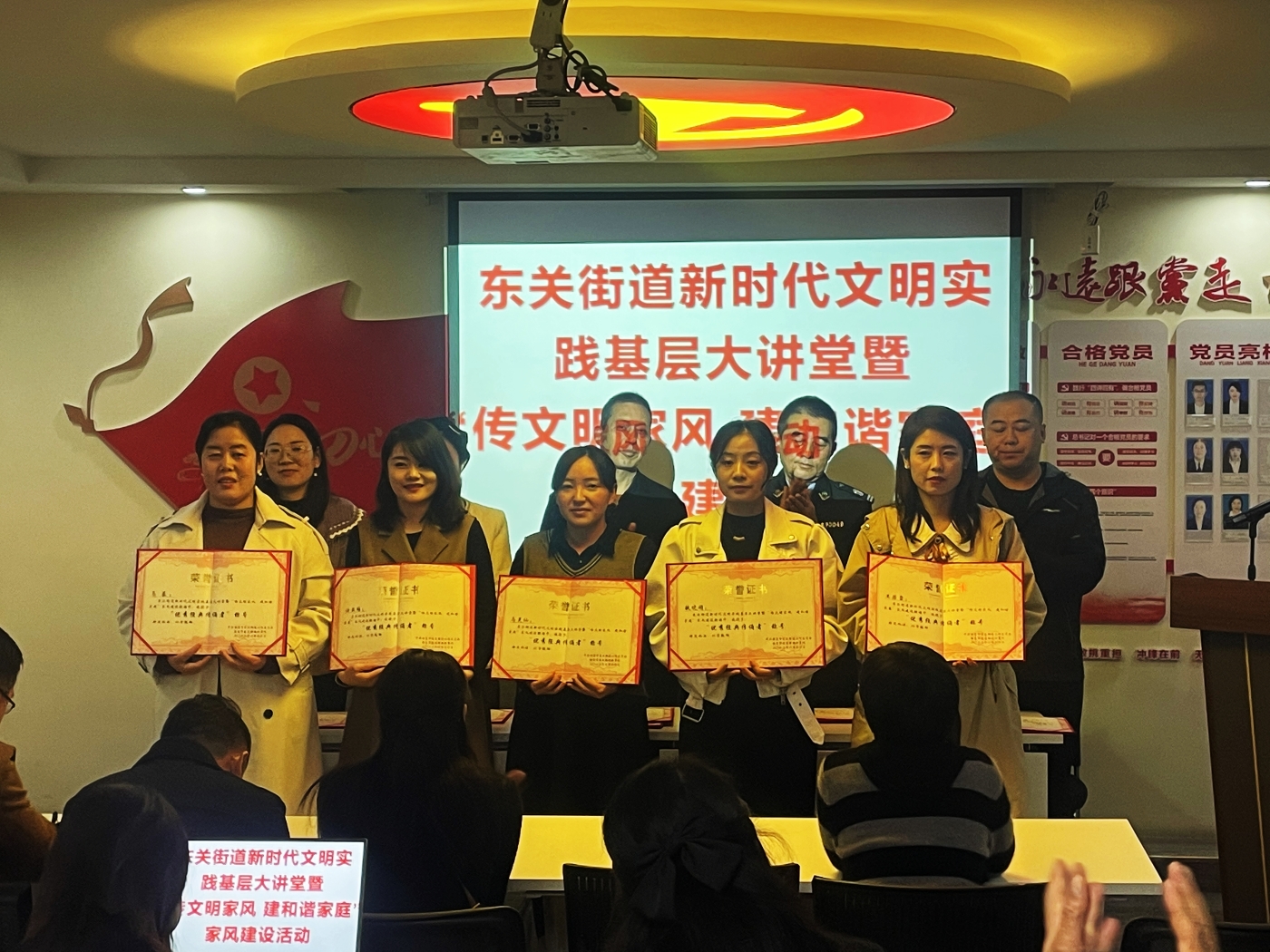活动最后,与会领导为辖区“最美家庭”代表和优秀经典朗诵者颁发了荣誉证书进行表彰。