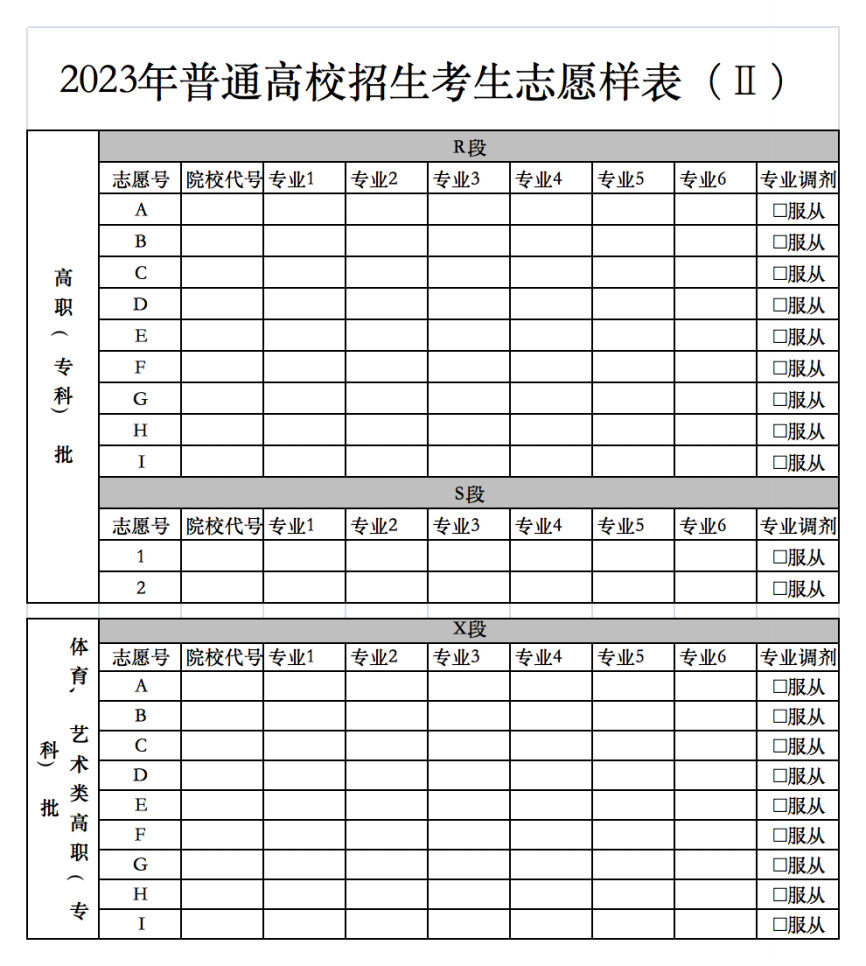 批次:高职(专科)批(R段、S段);体育、艺术类高职(专科)批(X段)。