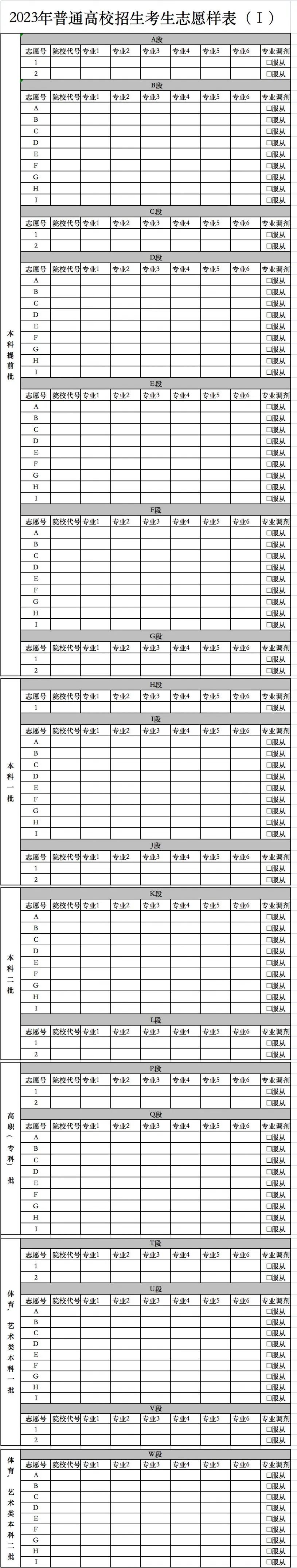 批次:本科提前批(A段、B段、C段、D段、E段、F段、G段);本科一批(H段、I段、J段);本科二批(K段、L段);高职(专科)批(P段、Q段);体育、艺术类本科一批(T段、U段、V段);体育、艺术类本科二批(W段)。