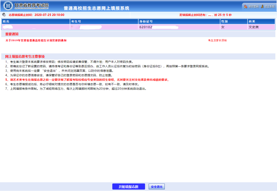 9.网上填报志愿需逐批进行填报、提交,删除与修改志愿也需逐批进行,提醒广大考生切勿漏填志愿。10.凡没有使用“志愿提交密码”,直接点击“安全退出”按钮的考生,志愿信息将不会保存。11.为确保志愿信息安全和密码安全,考生退出时请点击“安全退出”按钮。