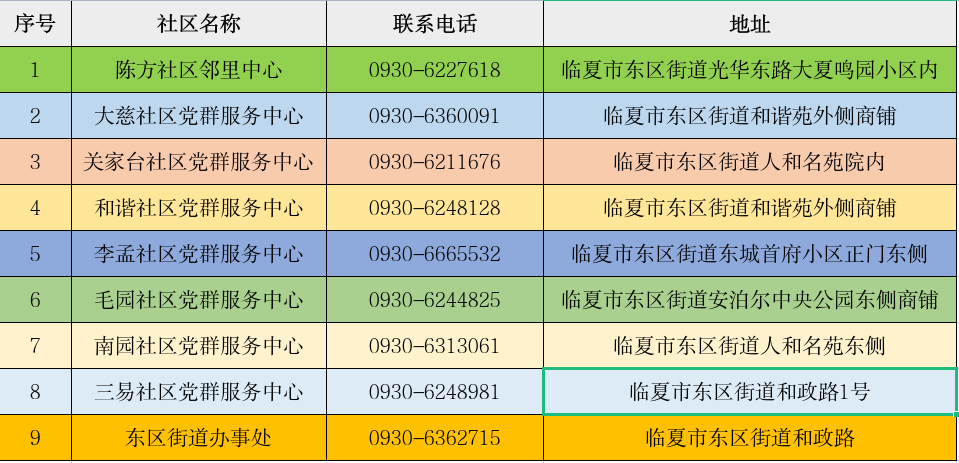 1.覆盖区域:临夏市东区街道所辖8个党群服务中心