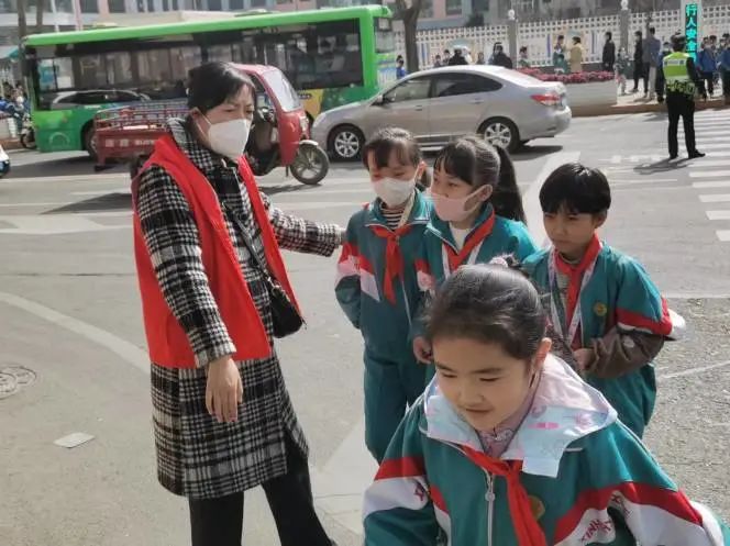 志愿者们身着红马甲,站上护学第一线,协助交警及学校教师共同维护秩序,引导小学生安全有序的通过马路,对行人、非机动车不遵守交通信号等交通违法行为进行劝导,同时开展“一盔一带”宣传引导,引导学生和家长自觉遵守交通法规,积极营造安全出行氛围。面对老弱残群体或者问路的行人,志愿者们都会为他们提供热情的帮助,为他们排忧解难。