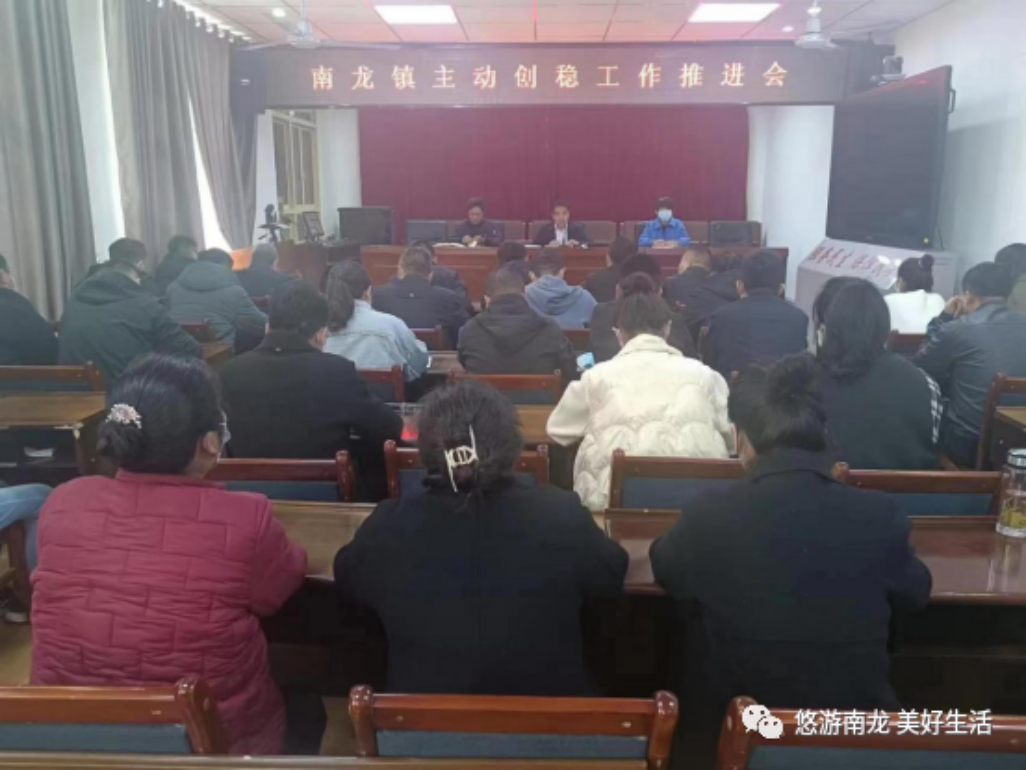 为深入贯彻落实省、州、市主动创稳推进大会精神,动员全镇上下进一步深化思想认识,靠实工作责任,推动全镇主动创稳工作扎实有效开展。3月14日,镇党委组织召开南龙镇主动创稳工作推进会。镇机关全体班子成员、科级干部、综治中心、司法所、南龙派出所工作人员、各村(社区)“两委”班子成员、驻村工作队长参加会议。