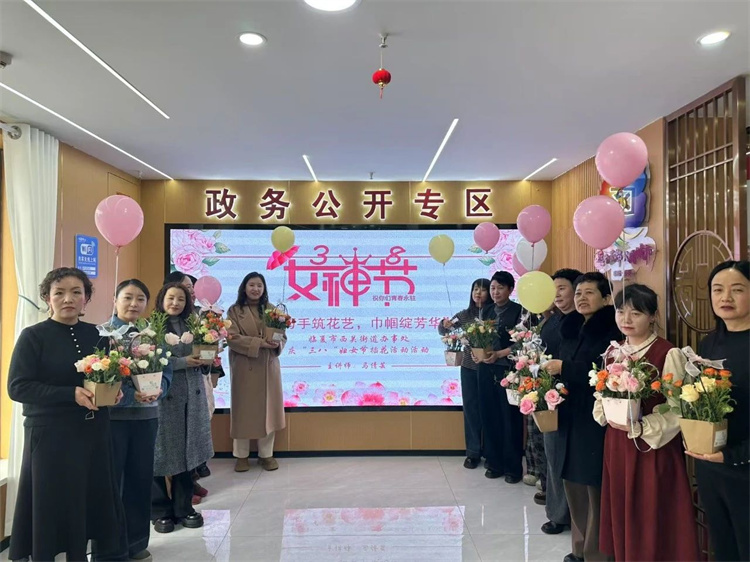 为庆祝“三八”国际妇女节,进一步丰富街道女干部精神文化生活, 激励女职工为街道的发展增光添彩,西关街道开展“巧手筑花艺 巾帼绽芳华”庆“三八”插花体验活动,为平日里忙碌在基层一线的街道女干部们送上一份温馨的节日祝福,让她们在花香四溢中感受生活的美好,释放工作压力。
