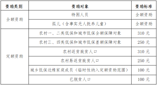 同一参保对象同时符合多种资助政策时,按照就高不就低的原则予以资助,不重复资助。(附表如下)