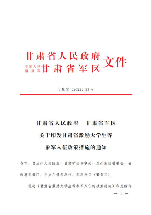 附件2:《甘肃省激励大学生等参军入伍的政策措施》